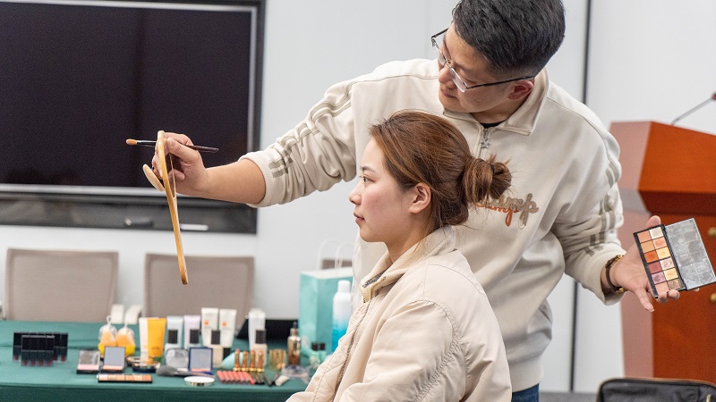 活動特邀資深化妝老師與(yu) 員工進行1對1教學。老師以專(zhuan) 業(ye) 的角度,從(cong) 皮膚護理、化妝工具與(yu) 產(chan) 品選擇、底妝部分、眉眼唇部妝容、職場妝容風格、發型搭配等方麵細致講解每個(ge) 步驟的技巧和注意事項,並結合實際需求,針對不同膚質、臉型提供了個(ge) 性化的化妝建議。女職工們(men) 認真觀摩,積極提問,現場氣氛熱烈融洽。