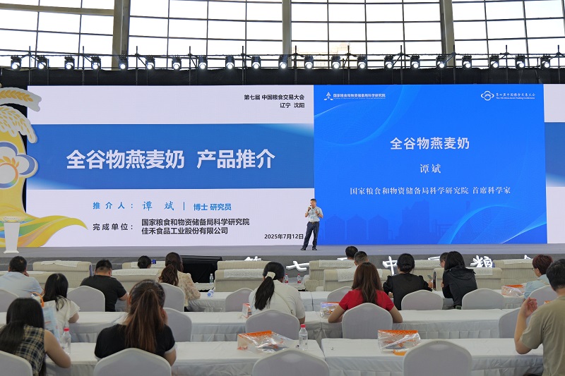 展會(hui) 期間,國糧院譚斌博士針對全穀物燕麥奶進行了產(chan) 品推介。他介紹,這款產(chan) 品的誕生源於(yu) 院企雙方對全穀物加工技術的聯合攻關(guan) ——針對全穀物燕麥奶加工中“口感風味不良”“穩定性差”等問題,團隊構建了專(zhuan) 用穩態化物料加工及產(chan) 品加工關(guan) 鍵技術體(ti) 係,這一核心技術突破填補了國內(nei) 相關(guan) 領域空白。